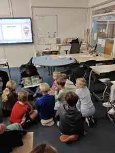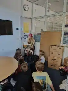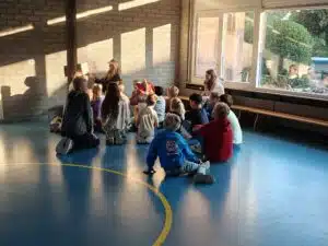 Vandaag zijn we op een bijzondere manier gestart met de Kinderboekenweek. De juffen hadden zich door de hele school verstopt. De kinderen gingen samen met hun maatje op avontuur. Zodra ze iemand gevonden hadden, mochten ze lekker gaan zitten en luisteren naar een spannend verhaal. In drie rondes ontdekten de kinderen zo verschillende boeken en verhalen. Terug in de klassen werd enthousiast verteld welke avonturen ze allemaal hadden gehoord. Een feestelijke en inspirerende start van de Kinderboekenweek!